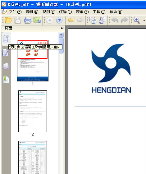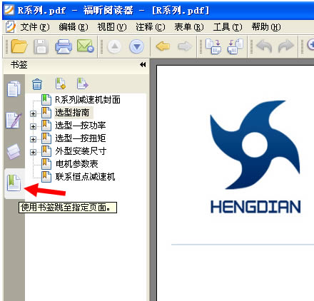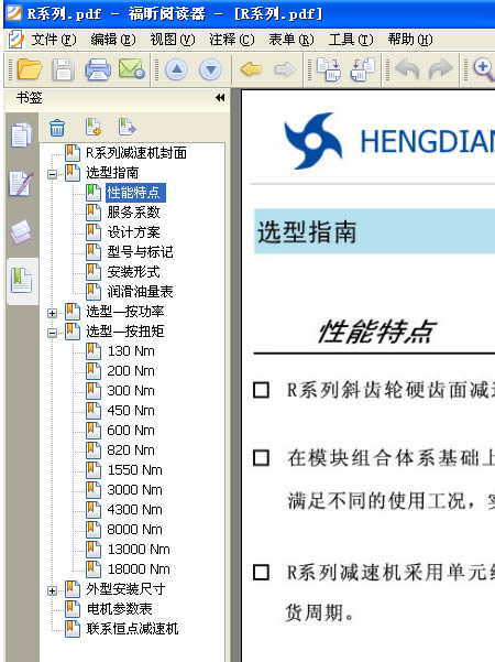 4: 打開一個PDF文件後,本例以打開 恒點傳動公司的R系列産品爲示範,看下軟件的左上角,如下圖: