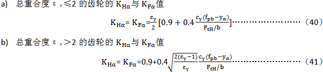 齒間載荷分配系數是考慮幾對同時齧合的輪齒之間的載荷分配不均勻的影響。其值按下述方法確定7):(7)式(40和式(41)基於這樣假定,即符合規定的齒輪精度的基節偏差,且是沿小輪和大輪的圓周正常分布。當輪齒具有某種故意的偏差時,它們是不适用於的。)