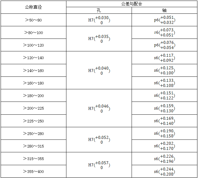 f.軸承孔尺寸公差帶爲H7,表面粗糙度Rα-不大於3.2μm。