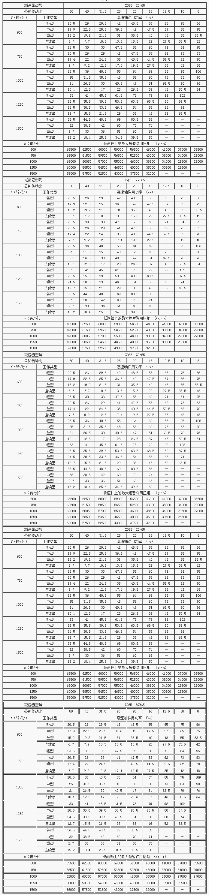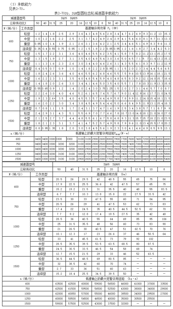 ZQ、ZQH型圓柱齒輪減速器承載能力(JB1585-75)
