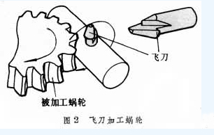 飛刀相當於(yú)蝸輪滾刀的一個刀齒。飛刀切齒隻能採用切向進給法,在滾齒機上可使飛刀轉一周蝸輪轉Z1個齒,再加上飛刀的切向進給與工作台的附加轉動,也能按展成法原理切出正確(què)的齒形。