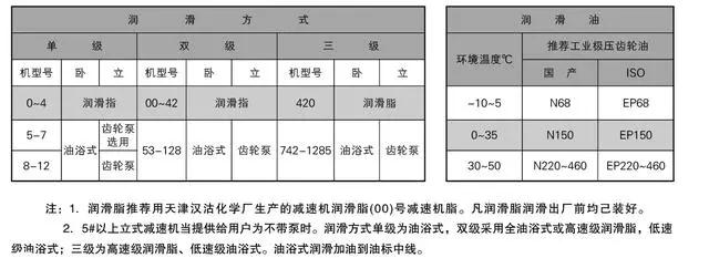 11.按照下表環境溫度選用潤滑油;若在高溫或低溫,即超出下表環境溫度(-10℃-50℃)使用,應重新考慮潤滑劑。
