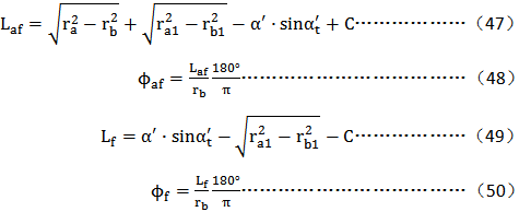 式中 :C——由中心距偏差和配對齒輪的齒頂圓徑向跳動引起的齒根起始檢驗點展開長(zhǎng)度的變(biàn)化量,mm。