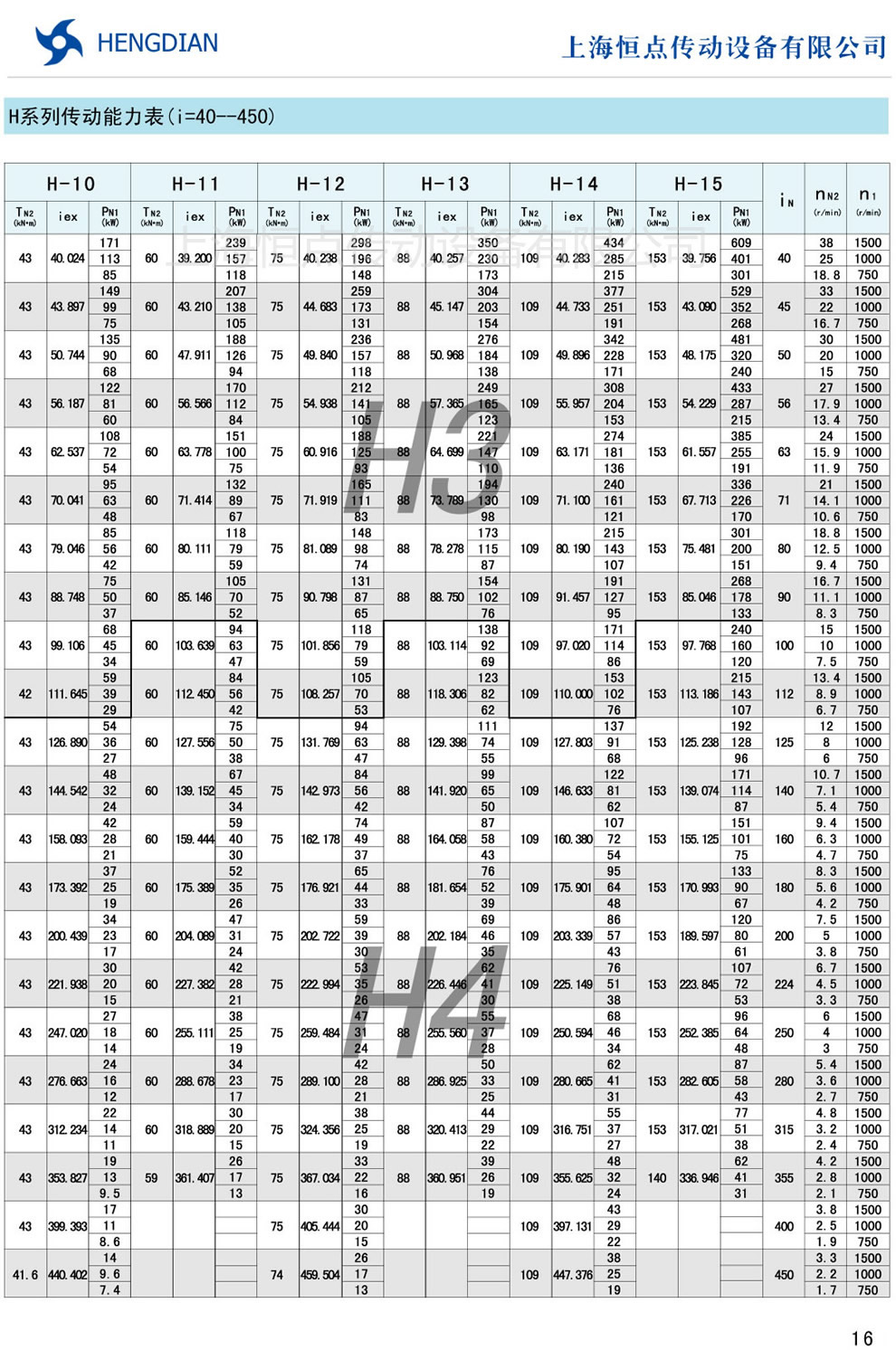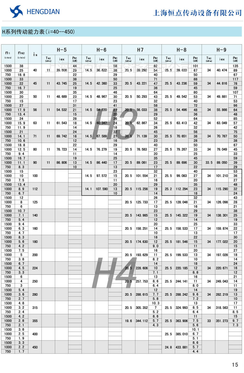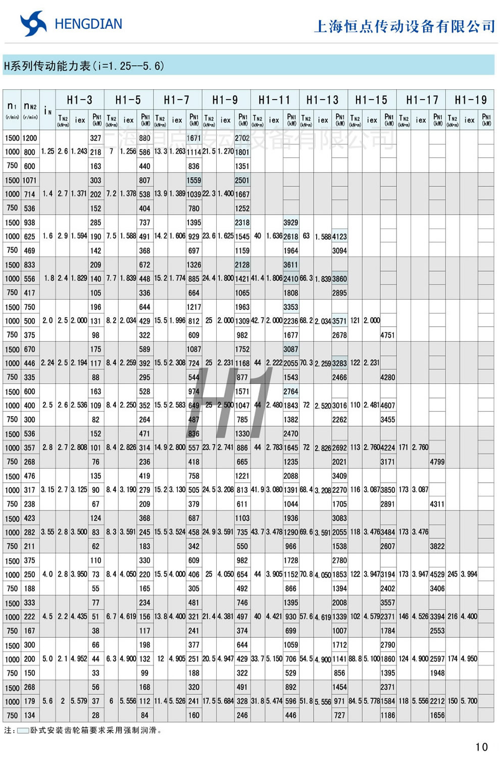 9 - B系列傳動能力表 10 - H系列額定熱容量